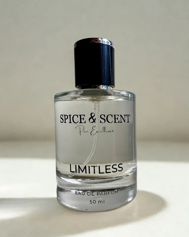 Spice & Scent: Limitless unfolds in layers — a soft floral opening gives way to the bold warmth of saffron, before settling into a refined, woody heart. It’s a fragrance of contrasts: delicate yet daring, grounded yet free. Made for those who live without bounds.